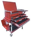 This is our SUN8013A Service cart with locking top and drawer, combined with our four most popular accessories, 3-Drawer unit, Large Locking Screwdriver/Pry Bar Holder, Side Work Bench and Leg Extension packaged together. 350 lbs. capacity with four drawers: 1 drawer 4 in. deep x 15 in. long x 26.5 in. wide, 1 drawer 1.5 in. deep x 15 in. long x 26.5 in. wide, 2 drawer 1.5 in. deep x 15 in. long x 12.25 in. wide. Large, easy to maneuver 4" wheels: 2 locking and 2 standard. Sunex Deluxe Service Cart - Red